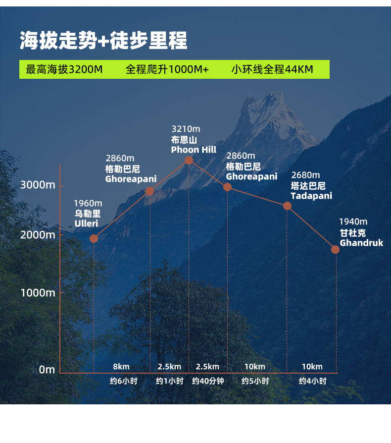 博卡拉(Pokhara)(820米)-乌勒里Ulleri(1960m)-格勒巴尼Ghorepani(2860m)
