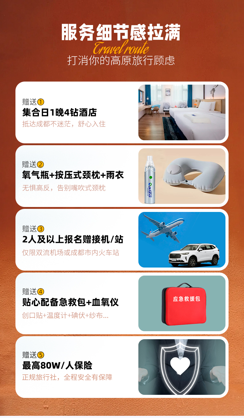 6、2人及以上报名赠双流机场接机/成都市内火车站接站(天府机场接机需自理费用);