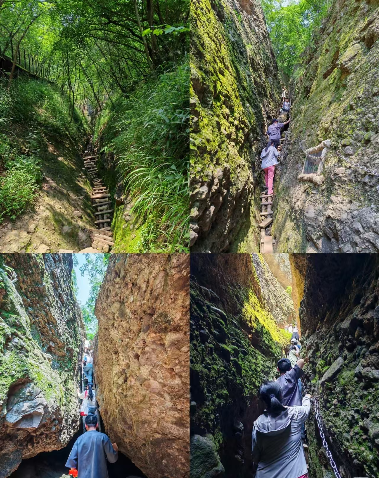 早出发约3小抵达、自行午餐后游玩皖西大裂谷,沿着谷底蜿蜒前行,脚下的道路崎岖不平,时而需要攀爬陡峭的岩石,时而需要穿越狭窄的石缝。耳边是潺潺的流水声和清脆的鸟鸣声,仿佛在为这场冒险之旅奏响美妙的乐章。随着深入裂谷,周围的温度逐渐降低,清新的空气扑面而来,让人感到无比的惬意和舒适。结束后前往酒店入住