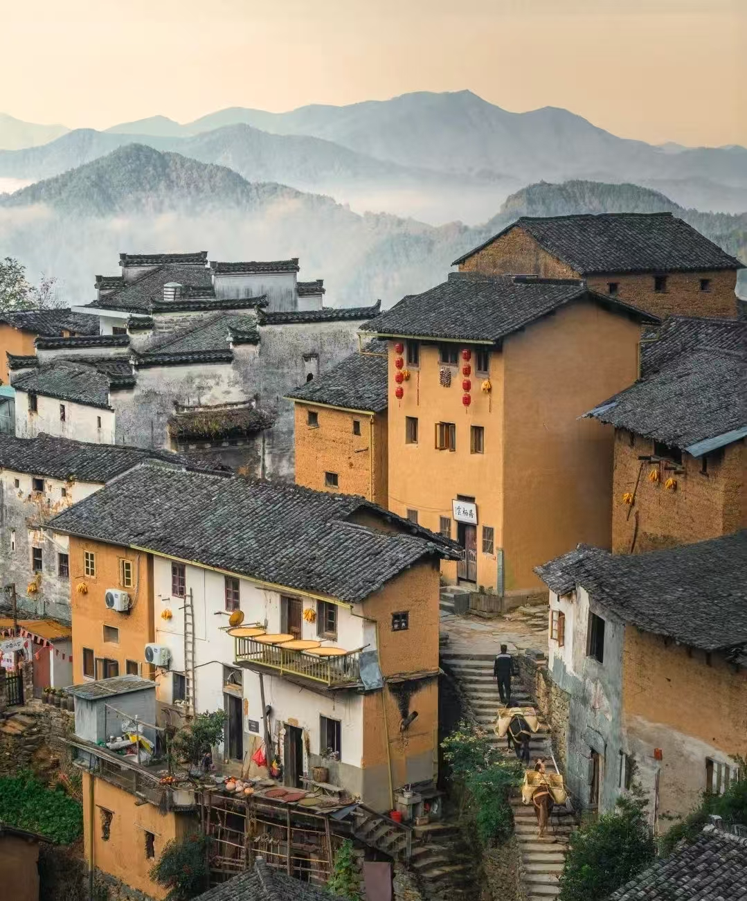 在黄山歙县的深山中,372栋红褐色土楼沿陡峭山势错落生长,构成一幅立体的农耕文明画卷。没有徽派建筑的精雕细琢,阳产土楼以最原始的姿态存在——山间红壤夯筑墙体,青石铺就千米古道,鱼鳞状瓦片如铠甲般覆盖屋顶。晨雾漫过时,土楼群半隐于云海,恍若悬浮于天际的古老部落。
