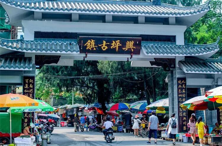 兴坪古镇漓江上一颗璀璨的明珠,位于阳朔县东北部。20元人民币的背景地就是在兴坪。具有1700多年历史,各类砖瓦结构的古建筑大部分保存完好,古街的东南侧狮子旦为熙平县城遗址,城墙轮廓尚清,随处可见古砖瓦陶瓷残片,只是原来车马来往人看人的繁华县城,呈现出一派青山幽幽、村舍几座的肃静氛围。